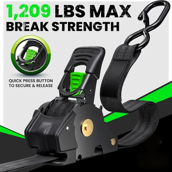 🧵 Bonus Pack - 4 Soft Loop Tie-Downs: Designed for motorcycles, UTVs, truck beds, and more—these soft loops prevent scratches while offering strong, flexible anchor points for even the trickiest cargo.
